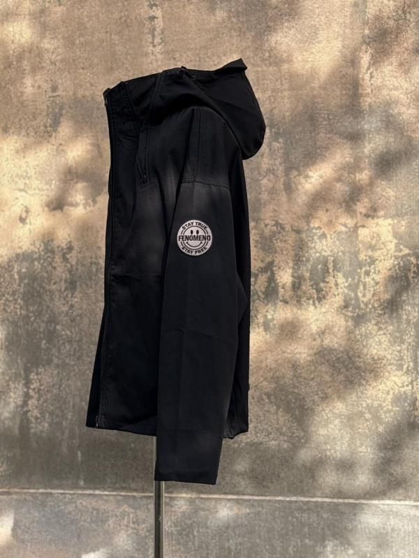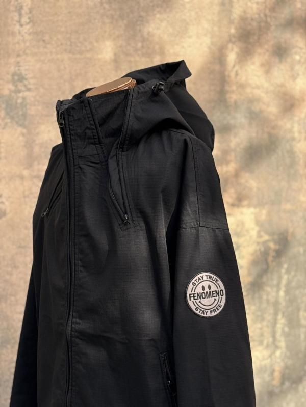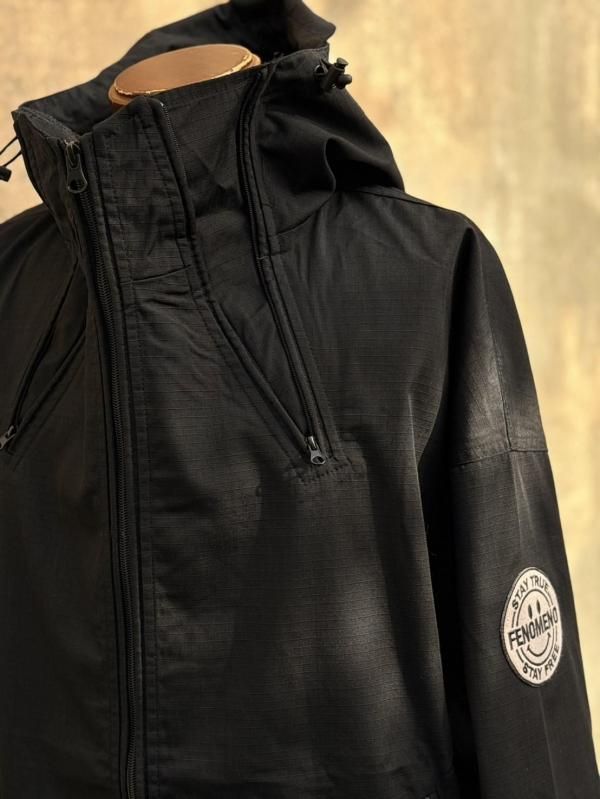 トリプルジップの開閉により、首元のボリュームや表情が変化するユーティリティブルゾン